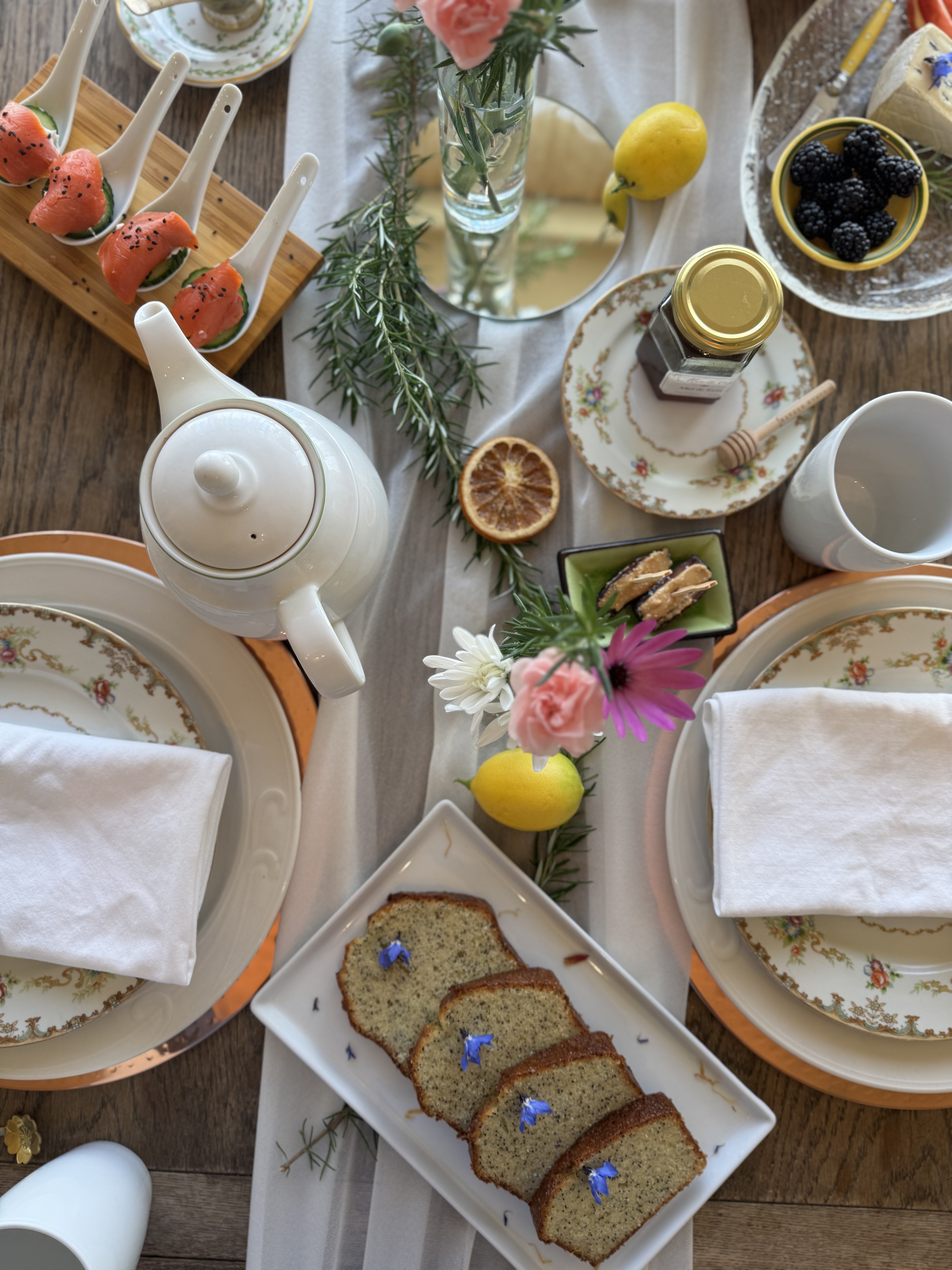 Afternoon tea feels like a small celebration. The table is set to combine the splendor of fine china with the cozy sweetness of delicate treats wrapped up like little presents that feel festive, organic, and intimate, serving as a lovely backdrop for meaningful conversations. The simple joy of a pot of tea is transformative when you stop to pause. Do you have a favorite menu item that you must have for your afternoon tea? I’d love to hear about it. Please share in the comments below.